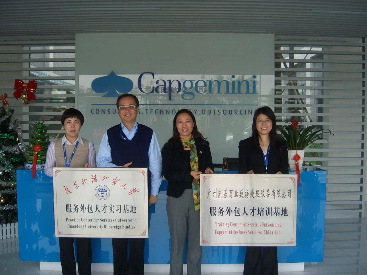 分别代表我院和广州凯基举行了双方合作的授牌仪式。广州凯基成为了广外的服务外包人才实习基地,广外也成为了广州凯基服务外包人才培训基地。