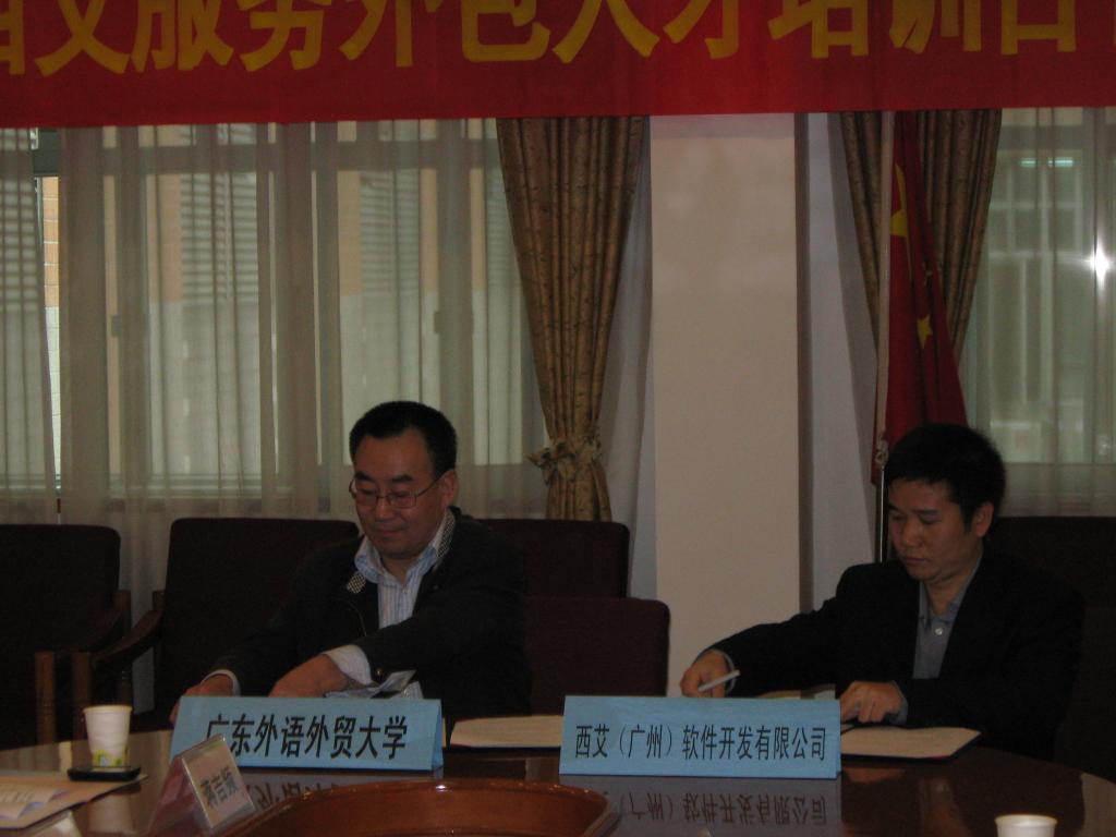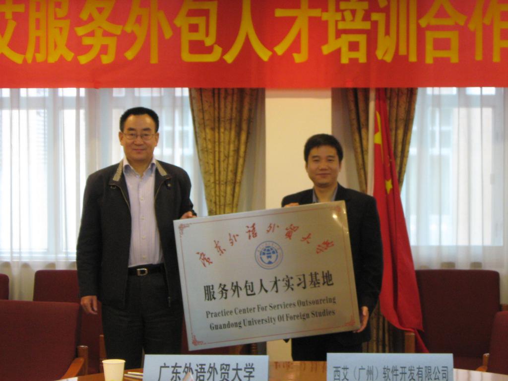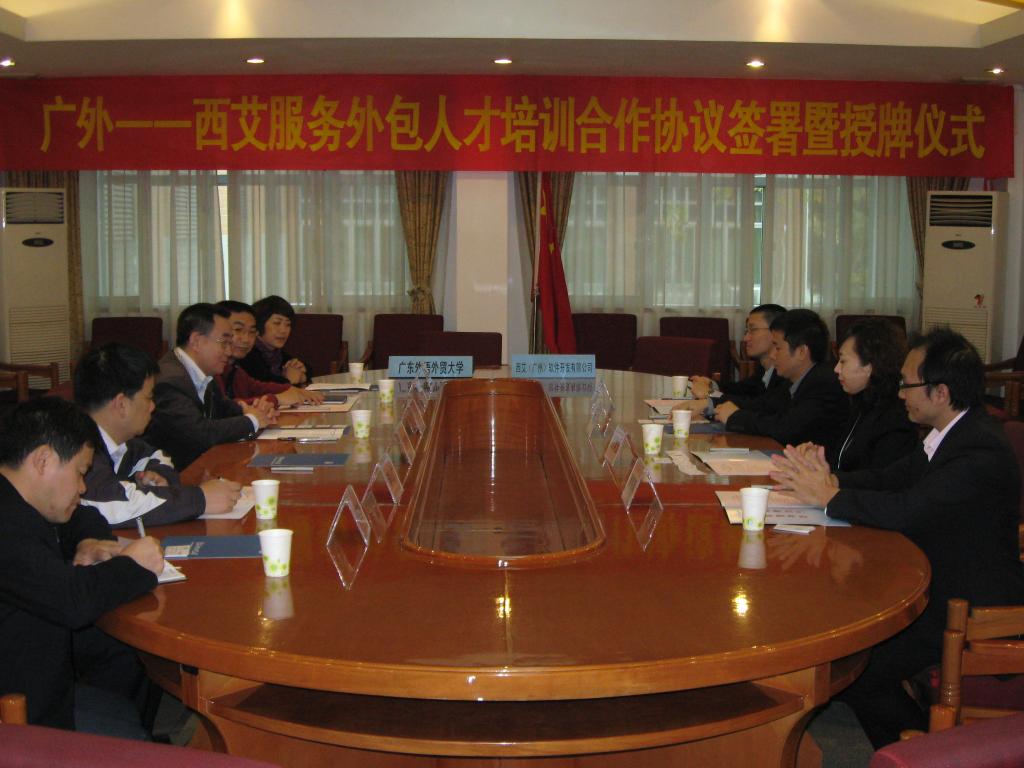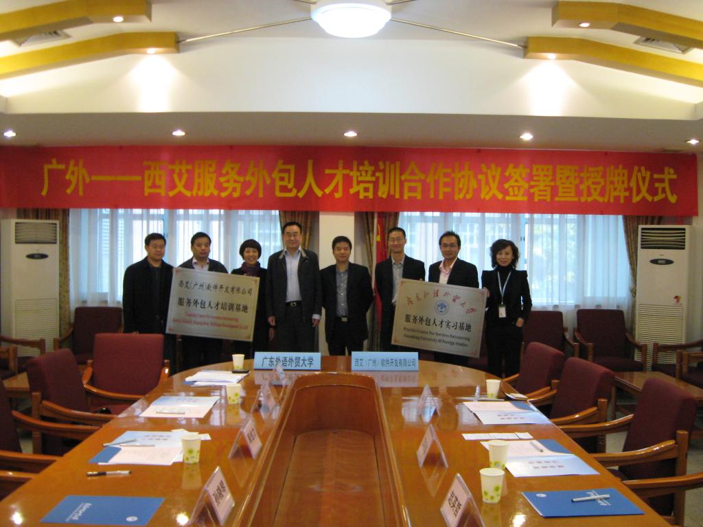 12月10号上午,在广外北校区行政楼第三会议室隆重举行我校与西艾(广州)软件开发有限公司服务外包人才培训合作签约授牌仪式。即西艾(广州)成为广外的服务外包人才实习基地,广外成为西艾(广州)服务外包人才培训基地。