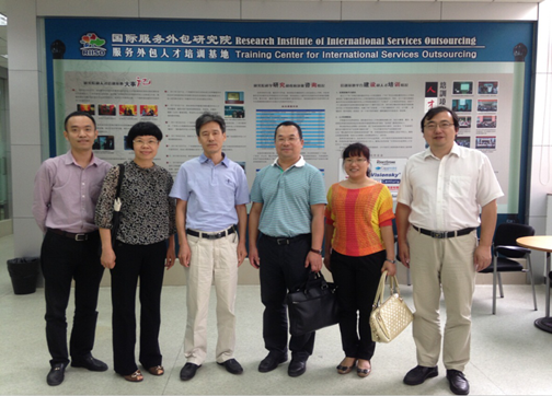 2015年10月10日,省商务厅服务贸易与商贸服务业处林小平副处长(调研员)、曾增科长、广东省服务外包产业促进会黄燕玲会长,莅临我院商谈联合举办广东省服务外包人才培养与发展工作会议,省商务厅是此次工作会议的主办单位,我院与广东省服务外包产业促进会共同承办,研究院林吉双院长,孙波、陈和副院长参加商谈。