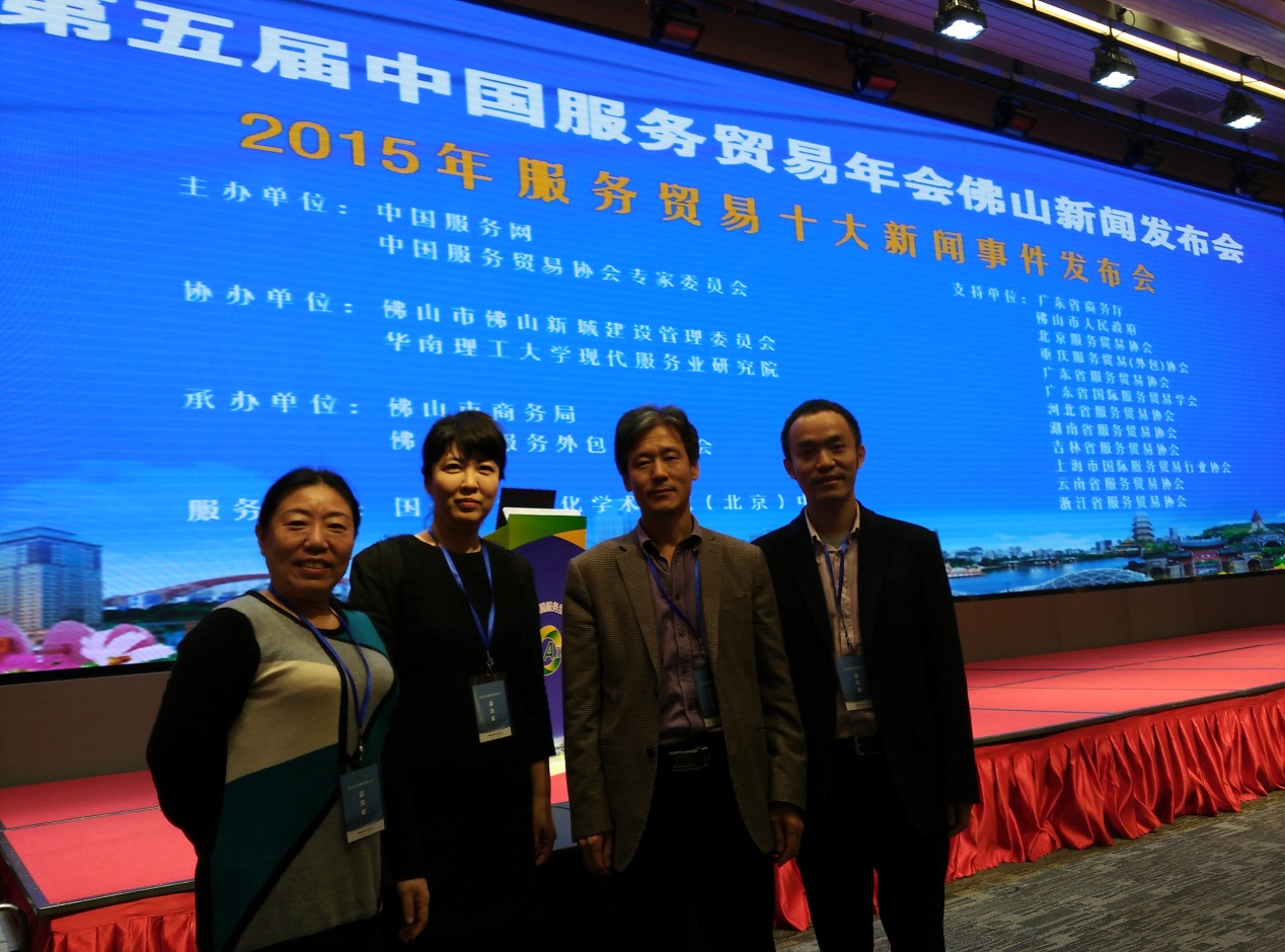 2015年12月23-24日,第五届“中国服务贸易年会”在广东佛山召开;目前,该年会已成为我国政产学研各界共同探讨服务业、服务贸易发展极具影响力的交流盛会。我校老师林吉双、陈和、冯春丽和冯然等参加了会议。