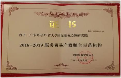 鉴于产教融合领域的深度思考与创新成果,在论坛闭幕式上,中国服务贸易协会授予我校国际服务经济研究院“2018-2019服务贸易产教融合示范机构”荣誉称号。