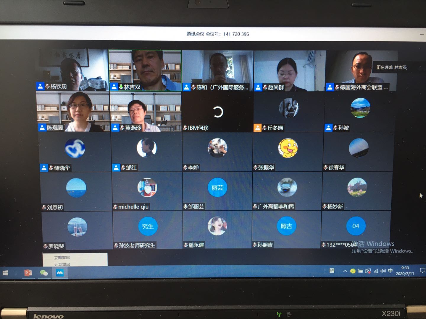 本网讯 7月11日上午,国际服务经济研究院举办了“广东稳外贸稳外资”线上研讨会。广东省商务厅服务贸易处处长赵尚群、广州市商务局服务贸易处处长储晓华、深圳市商务局服务贸易处二级调研员杨钦忠、德国海外商会联盟广州总经理徐晶波、广东省服务外包产业促进会副会长黄燕玲、广东进出口商会常务副会长邹红、IBM政府政策事务经理何珍、友邦资讯广州科技有限公司-运营支持副总监陈琨昱以及我校师生代表共50余人参加。