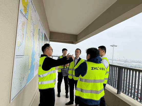 中海龙商务部佘铭升副总裁、汽车供应链事业部李俊杰经理首先带领调研小组参观了南沙广州港近洋码头,实地介绍了码头港区、产业园区、多式联运、广州进出口整车业务的运营模式等。